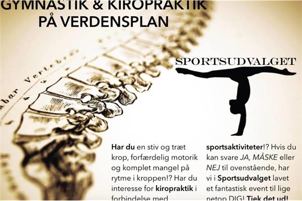 Sportsudvalget giver dig nu muligheden for at prøve kræfter med saltoer, split-spring og lidt rytme med en flok gymnaster fra DGI’s 8. og 9. Verdenshold. Derudover får du et indblik i hvad det vil sige at være kiropraktor på Verdensholdets Health Team.